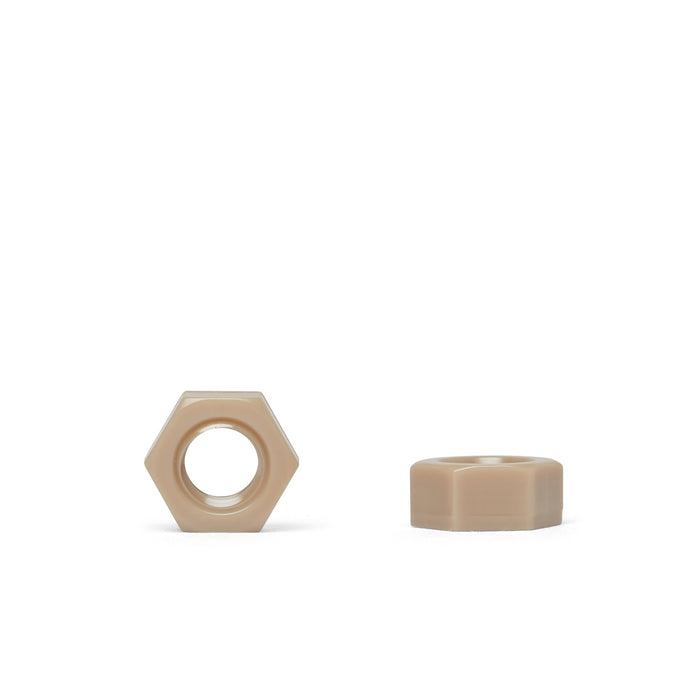 Low thermal conductivity polymer screws, nuts, bolts, washers, and fasteners are fasteners that are made from polymers that have a low ability to conduct heat. They are used in a variety of applications where thermal management is a concern, such as in the electronics and automotive industries, or in environments where heat needs to be isolated or dissipated.