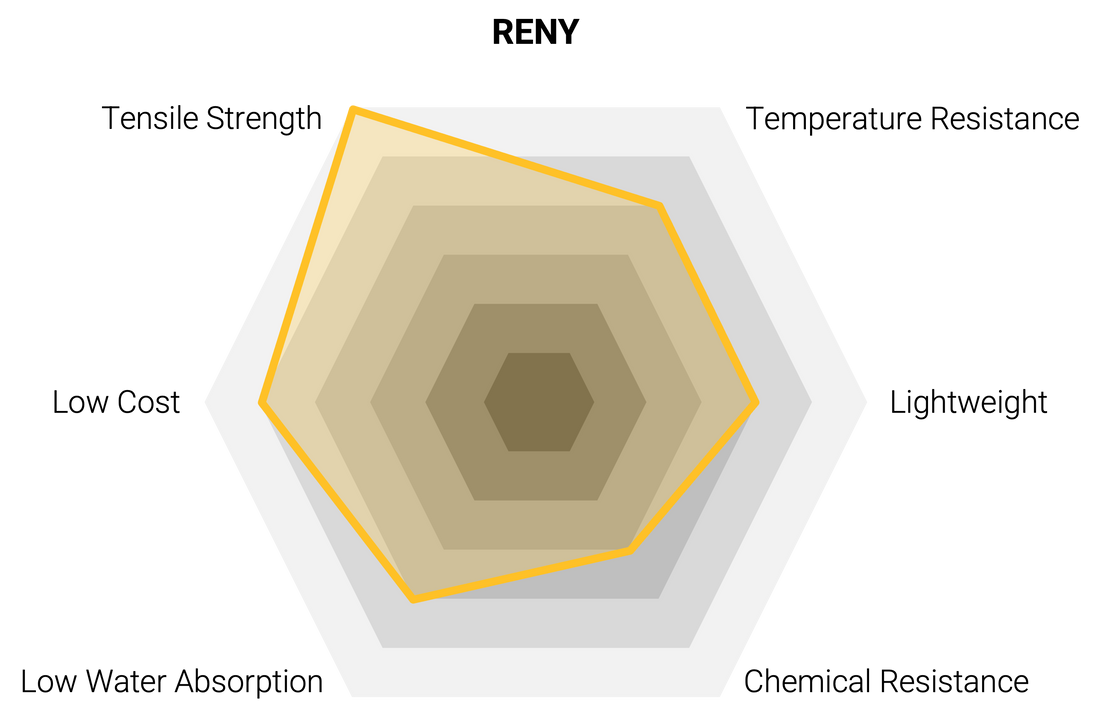 RENY MaterialRENY is a high-performance polyamide-based material reinforced with 50% glass fiber, offering outstanding mechanical strength and rigidity. Its excellent dimensional stability and resistance to wear make it ideal for demanding applications in industries such as automotive, electronics, and industrial machinery. RENY also provides superior thermal resistance and long-term durability, maintaining performance under high-stress conditions. These qualities make it a trusted material for applications requiring precision and reliability.