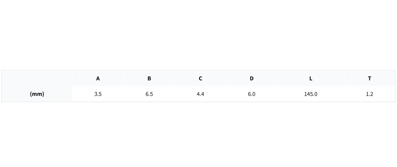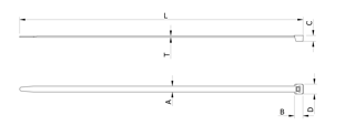 Dimensions for PEEK Cable Ties in all available sizes are shown according to the product drawing above.