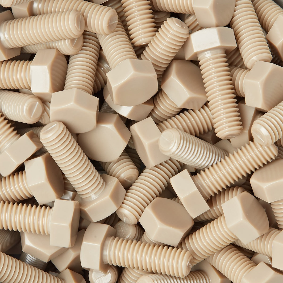 A customer example application features these bolts within semiconductor manufacturing equipment due to the high chemical resistance PEEK encompasses.