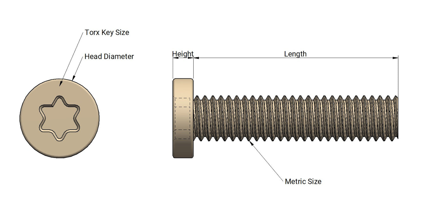 M Size Pitch (mm) Head Diameter (mm) Head Height (mm) Torx Size (mm)