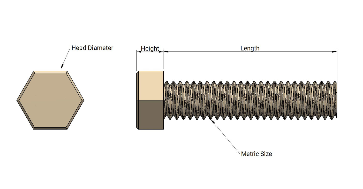 M Size Pitch (mm) Head Width (Flat-Flat) (mm) Head Height (mm)