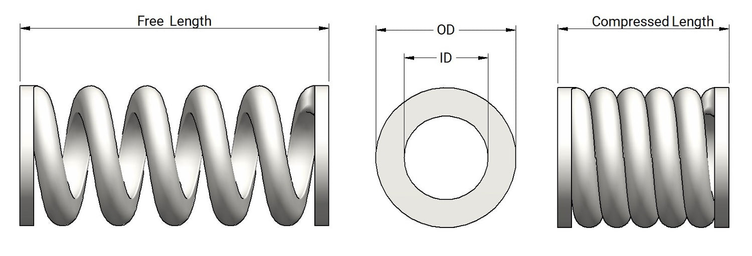 Inner Diameter (mm) Outside Diameter (mm) Free Length (mm) Solid Height (mm) Spring Rate (mm)