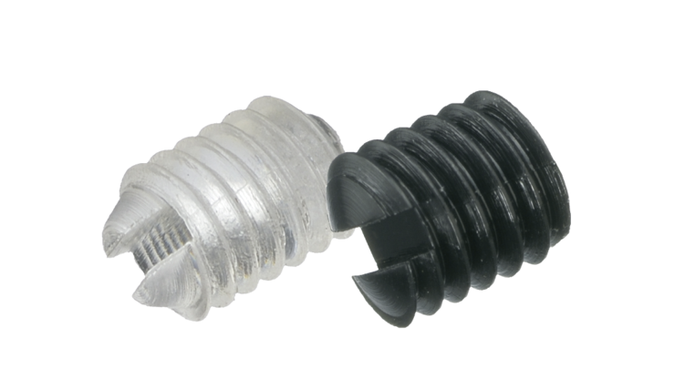 Polycarbonate (PC) Slotted ‘Grub’, also known as set screws, are available in metric sizes M3-M6.