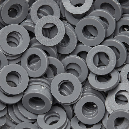 PVC (Polyvinyl Chloride) flat washers are great polymer washers for use in high UV environments and applications that involve exposure to large quantities of water.