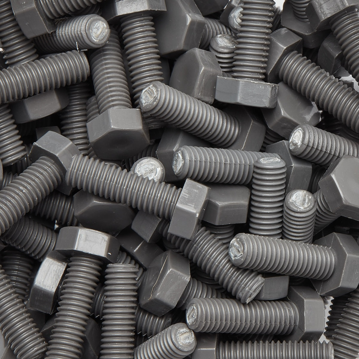 PVC exhibits exceptional durability and chemical resistance as well as high UV resistance (even for extended periods of external use). These characteristics make PVC hexagon bolts perfect for use in the construction industry.